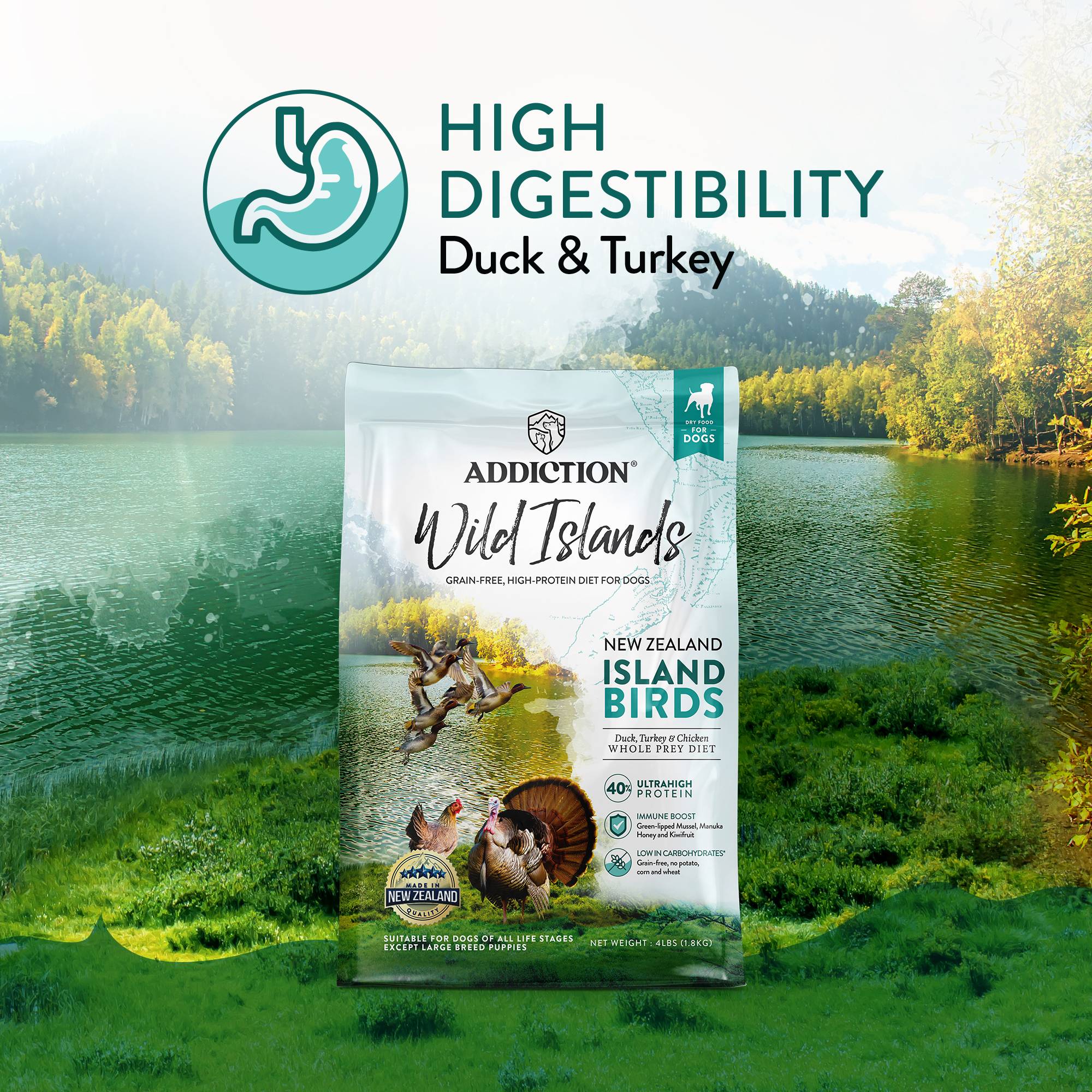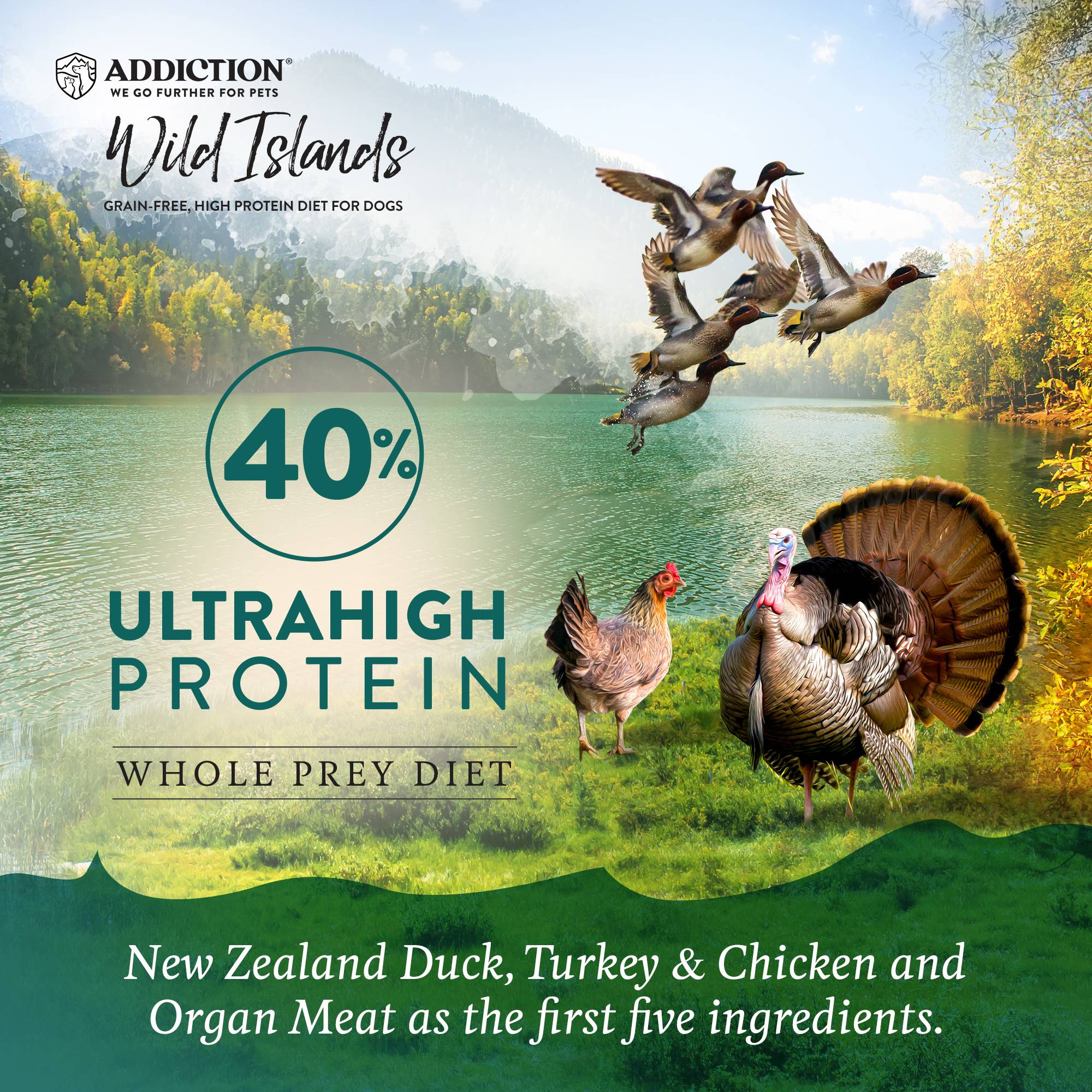 - Protein-Powered Adventure: Inspired by the boundless energy of wild dogs, Island Birds boasts an ultrahigh protein content of 40%. This protein-packed formula supports muscle development, energy, and overall vitality.