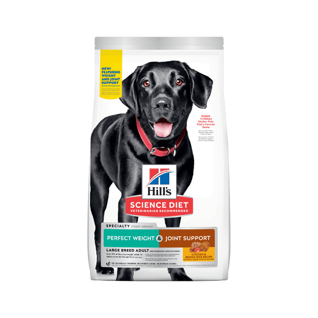 This weight management and mobility support dog food — in a larger kibble for large breed dogs — was created with Hill’s unique understanding of the biology of overweight dogs. It provides lean muscle support, and also uses clinically proven antioxidants for a healthy immune system. Over 70% of dogs lost weight within 10 weeks when fed this nutrition*. With added fish oil to provide EPA, an Omega-3, to help support joint function for a mobile & active life. Feed this breakthrough nutrition for your dog’s healthy joints & weight maintenance