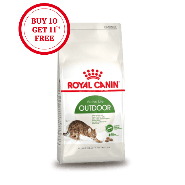 If your cat is partial to the outdoors and leads an active lifestyle, it’s important to ensure that its diet effectively supports its natural defences. ROYAL CANIN® Outdoor has a high energy and calorie content to ensure it meets the nutritional requirements for cats with an active, outdoor lifestyle. Having a high-energy diet will also help your cat cope with weather changes throughout the seasons. Developed with a special formula of nutritional antioxidants, ROYAL CANIN® Outdoor helps to support your cat’s immune system; while the inclusion of prebiotics support the intestinal flora for optimal intestinal health. To assist strenuous movements, such as running, leaping and climbing, ROYAL CANIN® Outdoor contains a combination of Omega-3 fatty acids (EPA and DHA) to support your cat’s joint health.