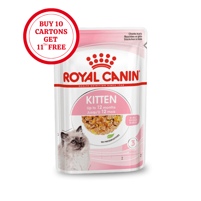 Transitioning from mother’s milk to solid food is one of the most important stages of your kitten’s life. This means that providing your kitten with food that it likes as well as the food that it needs is vital for normal eating routines and essential nutrition intake. That’s why ROYAL CANIN® Kitten Instinctive in Gravy is formulated to match the optimal nutritional profile instinctively preferred by kittens. Feeding your kitten a palatable diet that takes taste, scent and texture into account will lead to long-term, instinctive acceptance of the nutritious food that you provide. ROYAL CANIN® Kitten Instinctive in Gravy provides all the essential nutrients needed to sustain high energy requirements and support bone strengthening as well as good overall health maintenance. During the second growth stage (4-12 months), your kitten’s immune system will not be fully developed yet. ROYAL CANIN Kitten Instinctive helps strengthen the natural body defences of your kitten with a complex of antioxidants such as vitamin E, vitamin C, taurine and lutein. ROYAL CANIN® Kitten Instinctive in Gravy is specifically designed for easy chewing, and it’s also suitable to feed to mother cats. To cater to each cat’s individual preferences, ROYAL CANIN® Kitten Instinctive is also available as wet food in succulent jelly or a soft and tasty loaf.