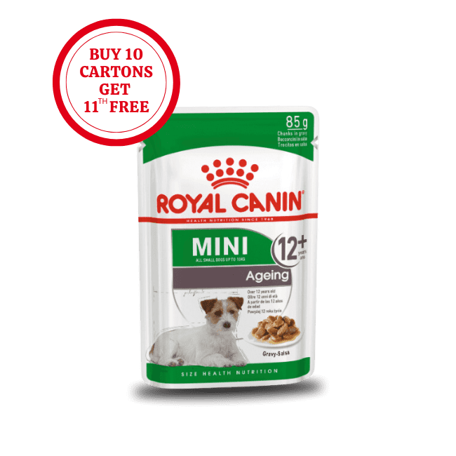 Suitable for small dogs over 12 years of age that weigh up to 10kg, ROYAL CANIN® Mini Ageing 12+ in Gravy is specially formulated with all the nutritional needs of your mini dog in mind. ROYAL CANIN® Mini Ageing 12+ in Gravy contains a complex of antioxidants. This formula of antioxidants helps to neutralise the effects of free radicals.