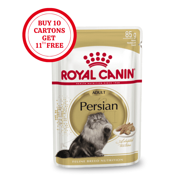 The Persian breed officially has the longest and densest coat of all cat breeds! That’s why ROYAL CANIN® Persian Adult Loaf contains a special, exclusive combination of nutrients to help support the skin’s “barrier” defence role in maintaining skin health and keeping long-haired coats shiny and glossy. ROYAL CANIN Persian adult loaf has been formulated with a delicate and adapted texture for optimal palatability. It also helps maintain digestive health with a variety of highly digestible proteins and a specific blend of fibres, alongside an accurately tailored level of vitamins and minerals. The Persian is a medium-sized cat, but can appear larger due to the generous coat and undercoat that envelops it. As well as feeding your Persian cat a diet of ROYAL CANIN® Persian Adult Loaf, we recommend grooming and untangling your cat’s fur each day. To cater to each cat’s individual preferences, ROYAL CANIN® Persian Adult Loaf is also available as dry food, with crunchy and tasty kibbles.