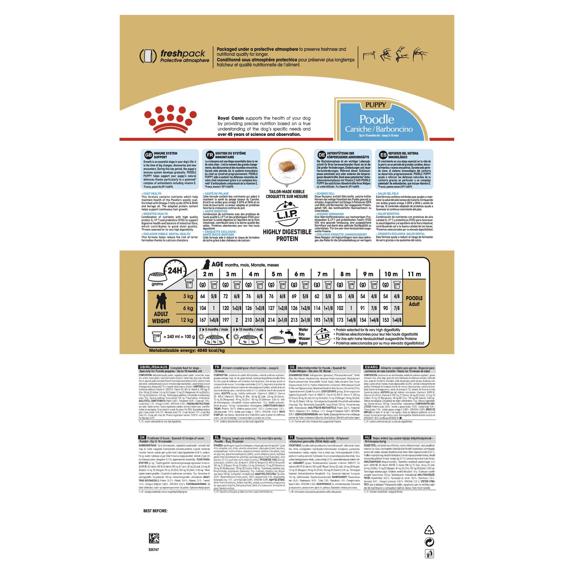 This formula contains nutrients which help maintain health of the Poodle’s woolly coat. Enriched with Omega 3 fatty acids (EPA & DHA) and borage oil. The adapted protein content helps support continuous hair growth.